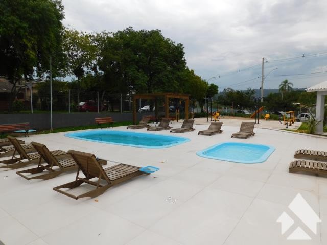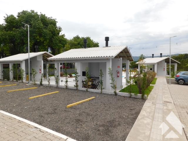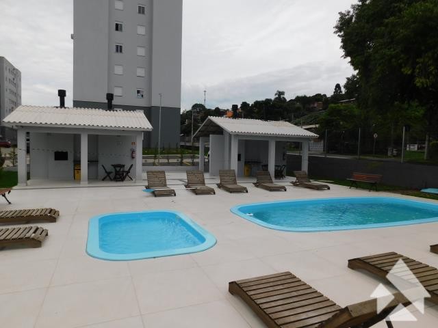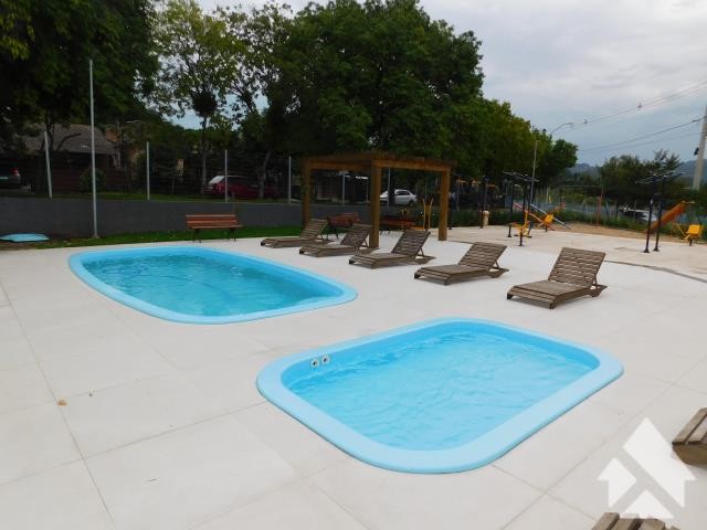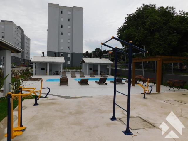 Condomínio com piscina adulto e infantil, salão de festas com churrasqueira, playground e academia ao ar livre.